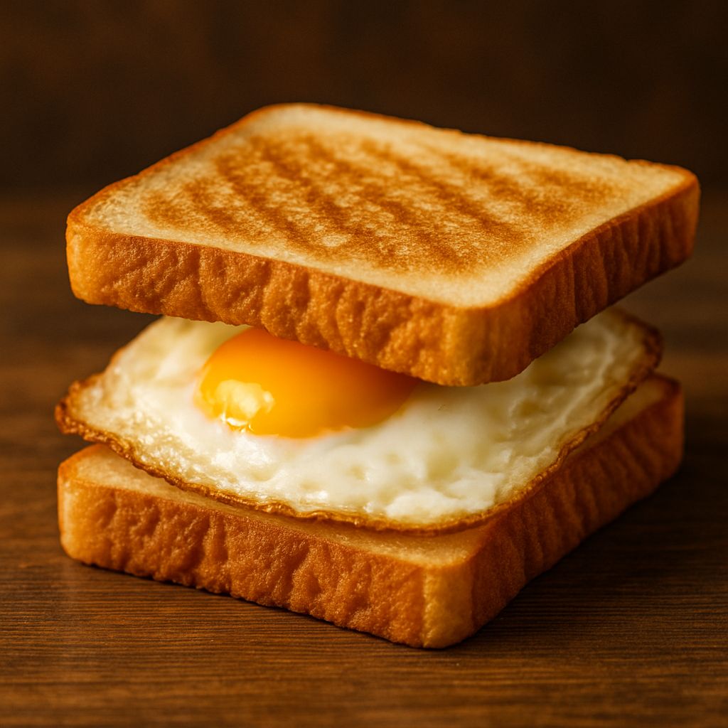 Freshly baked bread with perfectly fried eggs